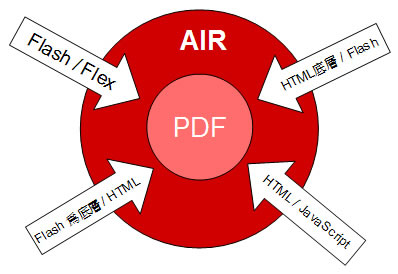 AIR(全名Adobe Integrated Runtime),前身是Apollo,美商Adobe公司在开发此项目时所命名的一个代号名称,它是专为网络桌面系统应用的一个执行环境 (RunTime),竞争产品如同微软的WPF,AIR能真正跨平台在Windows/Mac/Linux操作系统上执行,目前为Alpha 1阶段(Linux版还没释出),很适合应用在网络多媒体内容上,如把PDF、Flash/Flex、HTML、Ajax全部结合在一个程序上,加上善用 操作系统上的环境资源,就能快速开发出RIA应用,并且原有的网页开发者不需要重新学习新的语言。