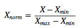该方法实现对原始数据的等比例缩放,其中Xnorm为归一化后的数据,X为原始数据,Xmax、Xmin分别为原始数据集的最大值和最小值。
