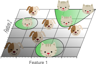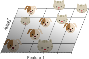 我们称这些代表颜色的数字为特征,这些特征不足以生成一个很好的分类器,一般来说,颜色无法区分猫和狗,所以需要添加更多的特征,来描述图片的结构,比如在X与Y方向的平均边缘或梯度强度来计算,结合起来便有5个特征,足矣分类猫和狗。