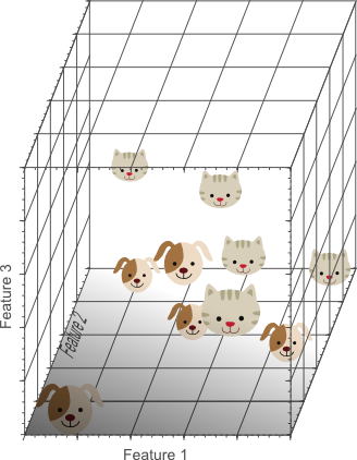 图4,三维空间中,能够找到一个超平面,来把猫和狗完美分类