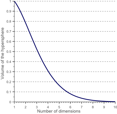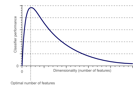 换句话说,如果可用训练数据的数量固定,增加维度会导致过度拟合。但是当训练数据随着维度以指数级增加时,分类器才会保持相同的覆盖率来避免过拟和。
