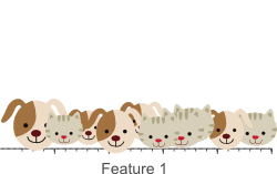 假定有无穷多的猫和狗,任取10个猫或狗,我们的目标是使用10个训练样例,来对无穷多的测试样例进行分类,下面开始模型的构建,首先,随意输入一个特征,如三原色中的红色