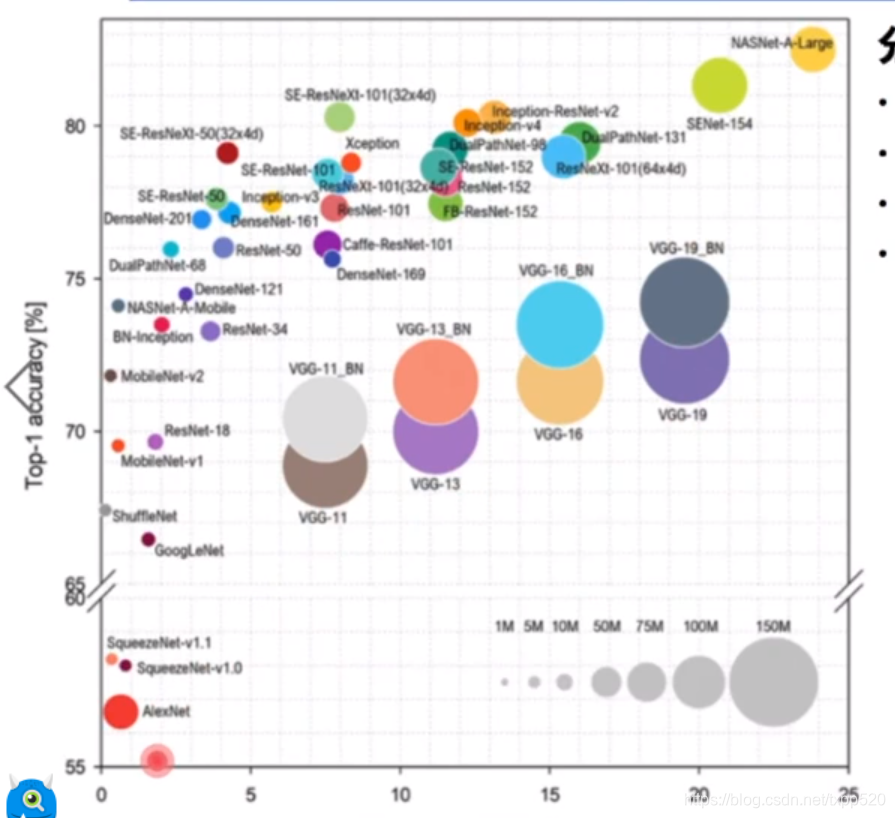 19.18 X 是计算量,Y是 表示模型的精度,还有个维度,圈圈的大小,圈圈越大,表示它的内存开销越大,