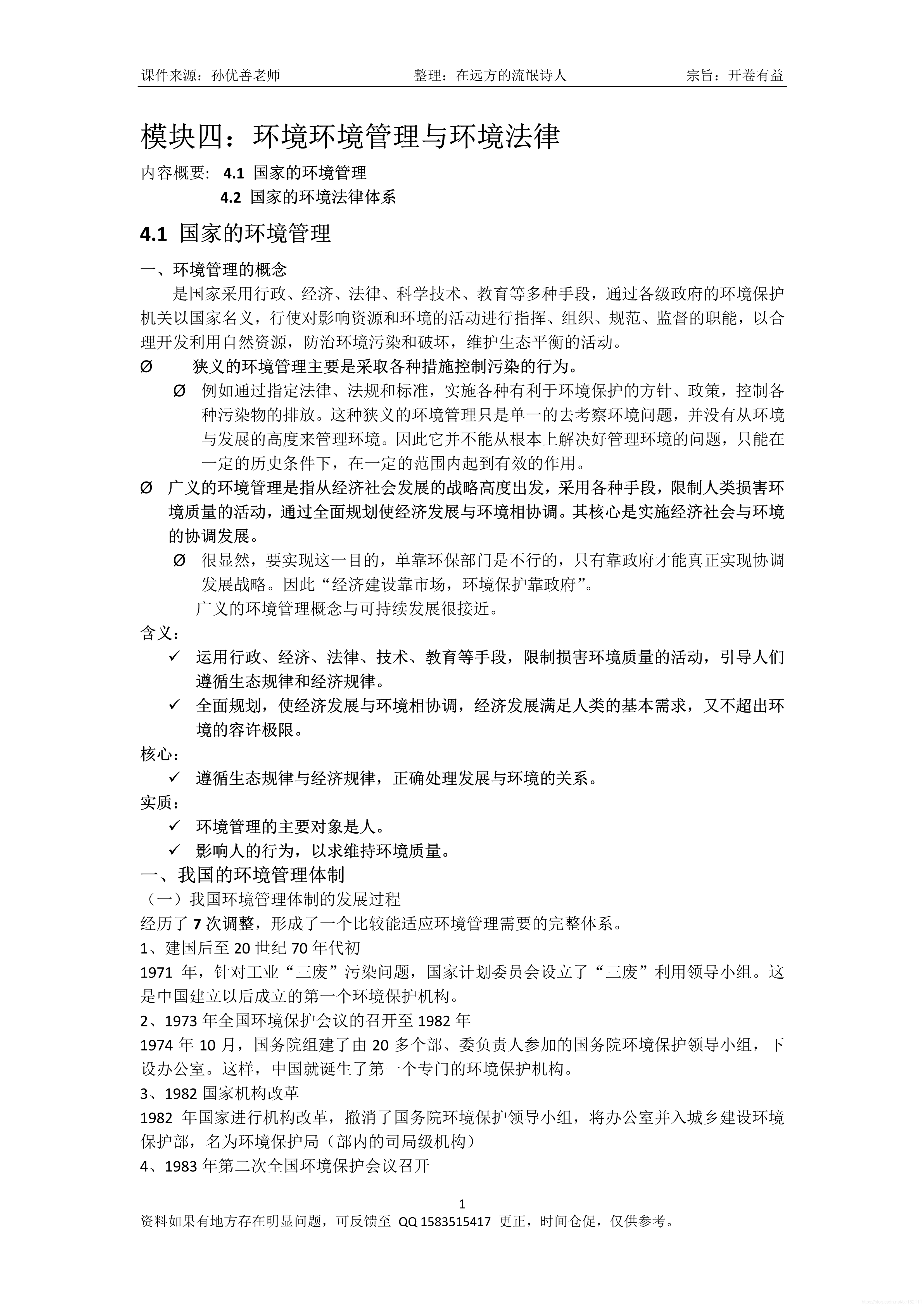 本文介绍了中国环境管理制度中的关键内容,包括排污许可证制度、环境保护目标责任制、城市环境综合整治定量考核制度等。重点阐述了“三同时”制度,即建设项目中的环保设施必须与主体工程同时设计、施工和投产,以确保安全生产和环境保护。这一制度是中国特有的环境管理措施,对于预防环境污染和保护劳动者安全具有重要意义。