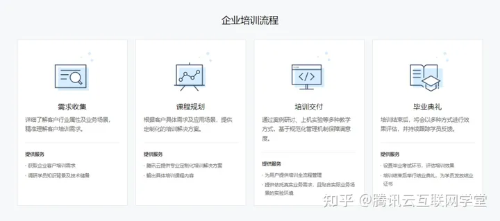 企业培训,是腾讯云根据企业客户的具体需求,为其提供云计算方向和专项技术方向的培训解决方案,从而为企业培训专业人才。