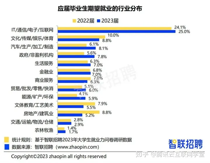 马上就是金九银十啦,今年这届应届毕业生,依然还是从前的味道~为啥这么说,我们先来看一份2023年的期望就业的排行: