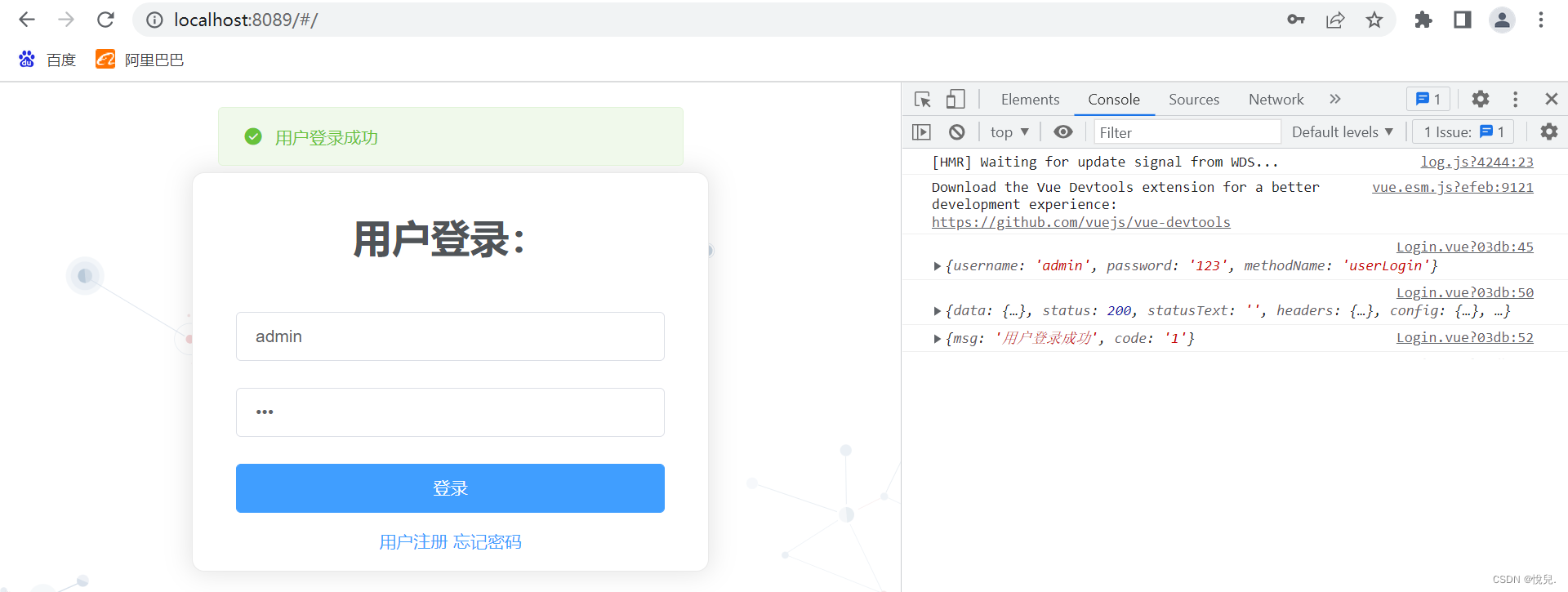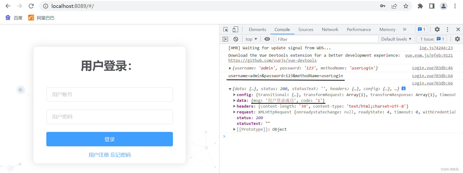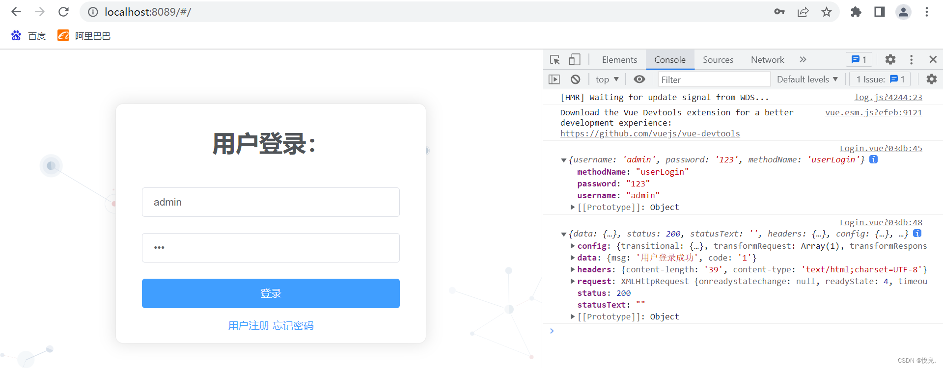 Vue.use(VueAxios,axios)3.之后就可以直接在Vue组件文件的methods里使用了