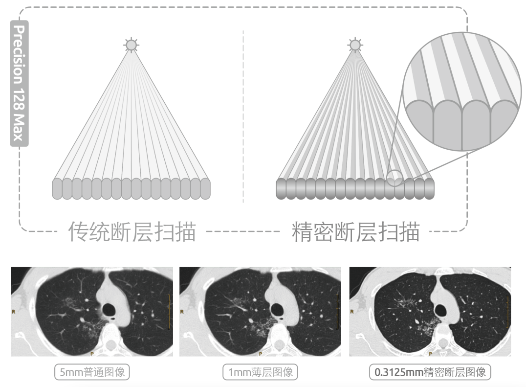 开影医疗CT新品Precision 128 Max 精密断层能谱CT具有发明专利精密断层技术,能够实现0.3125mm层厚采集高清晰度结构成像,具有超高速度扫描0.298秒/圈、时间分辨率高达29.8ms,能够进行快速心脏成像和动态相位成像,同时拥有高分离度能谱成像,全面开拓了CT诊断的新领域。