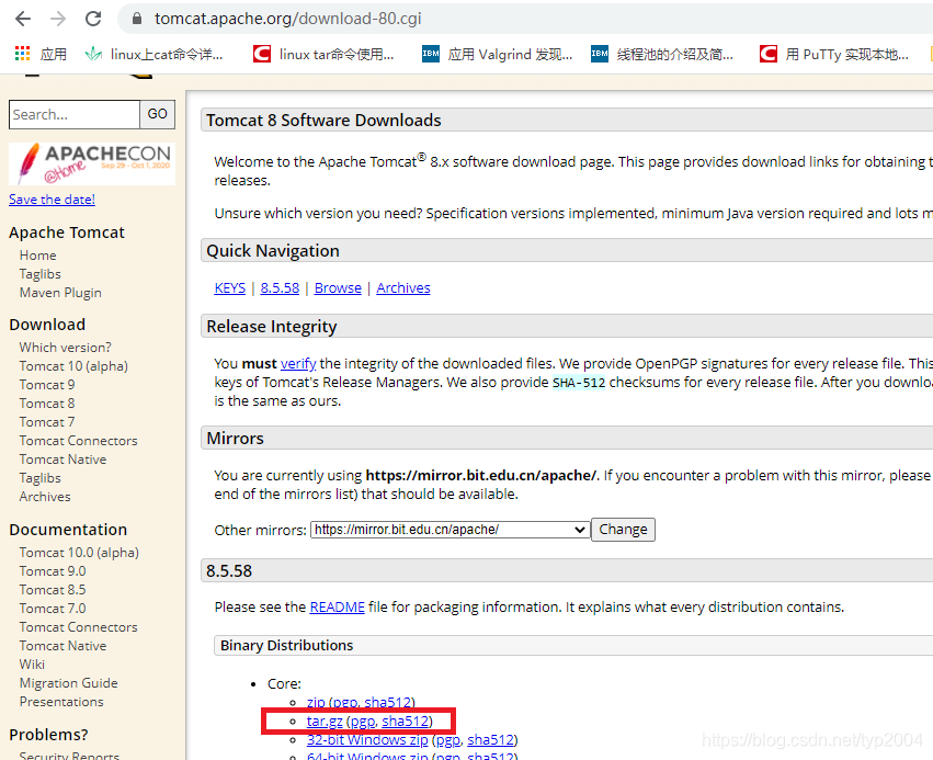 3.1 首先,下载软件(tomcat8 地址 https://tomcat.apache.org/download-80.cgi )
