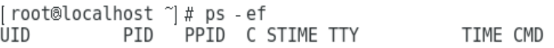 (2)参数e代表显示当前所有的进程,参数f代表已指定的格式显示信息,如图