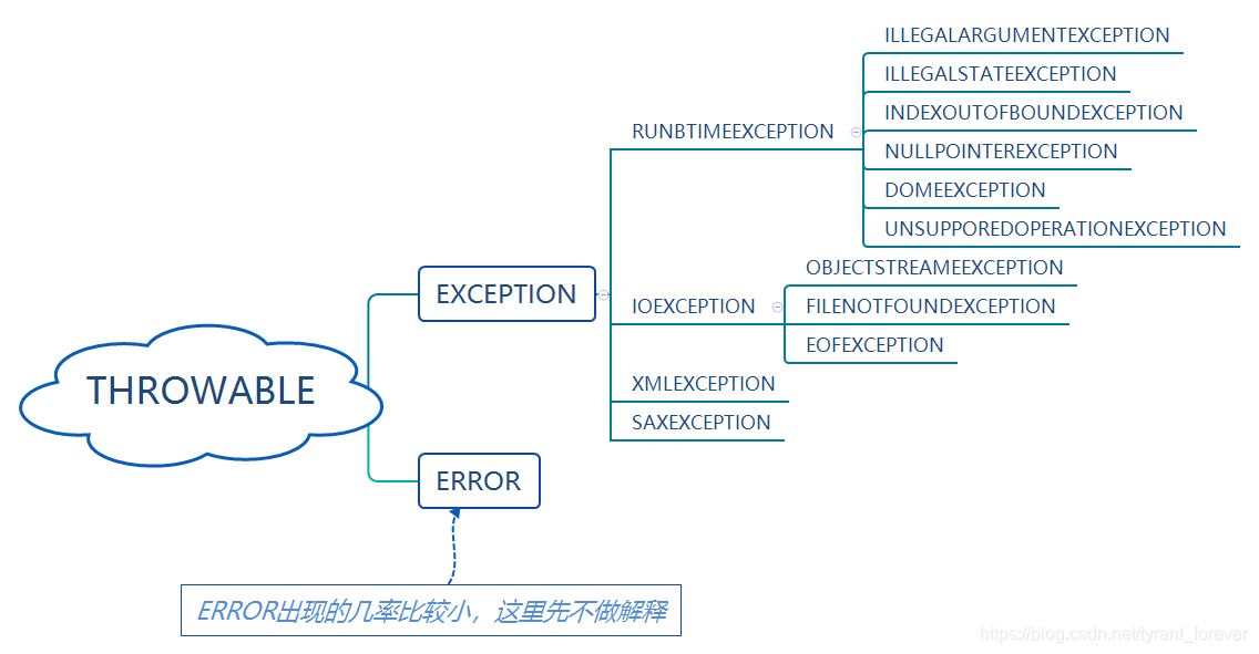 2、我们将所有派生于EXCEPTION和ERROR的类的所有异常称为(unchecked)非受查异常,其余为受查(checked)异常,所谓非受查异常就是不排除就无法运行的异常。
