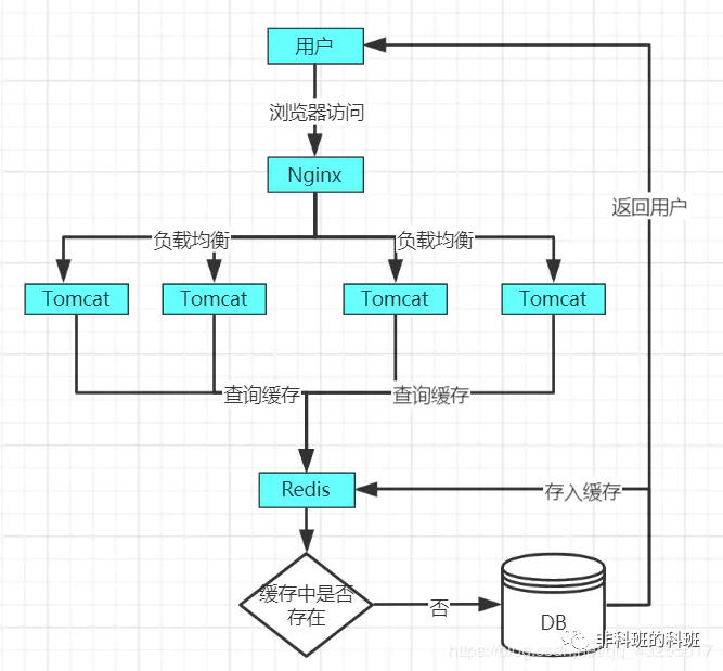 缓存雪崩的原理图如下,当正常的情况下,key没有大量失效的用户访问原理图如下: