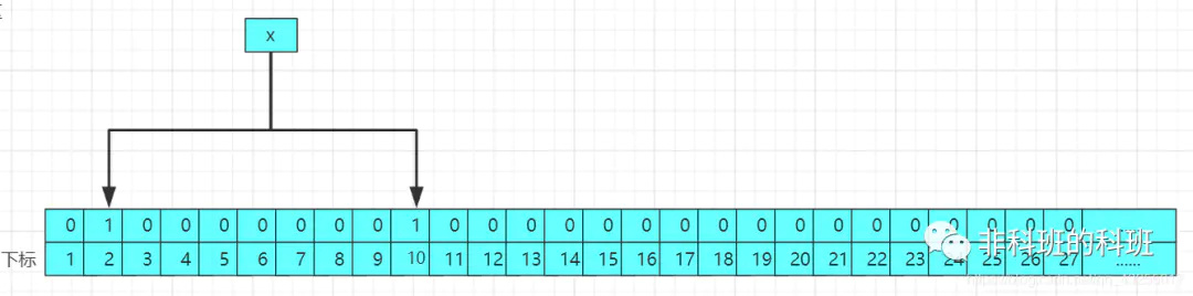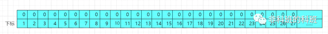 位数组初始化都为0,它不存元素的具体值,当元素经过哈希函数哈希后的值(也就是数组下标)对应的数组位置值改为1。