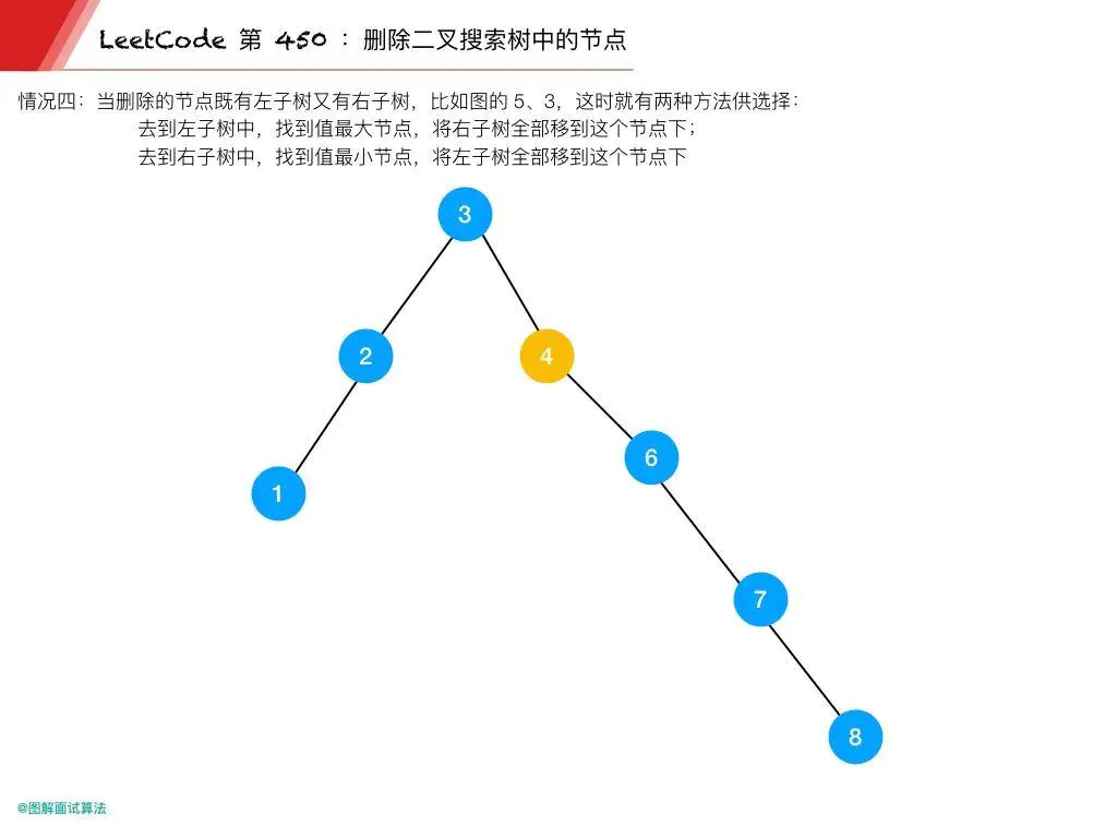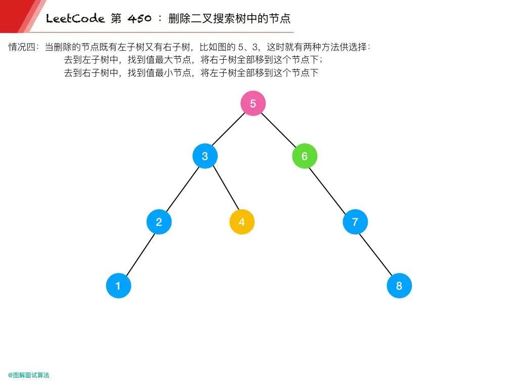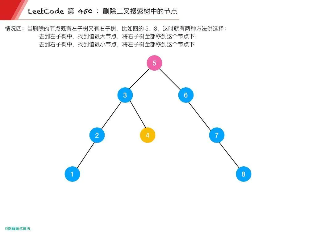 情况 4:当删除的节点既有左子树又有右子树,比如上图的 5、3