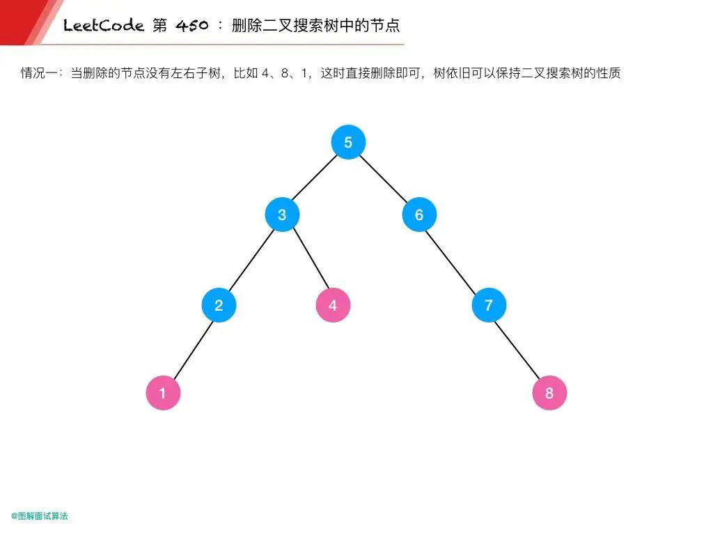 情况 1:当删除的节点没有左右子树,比如上图的 4、8、1