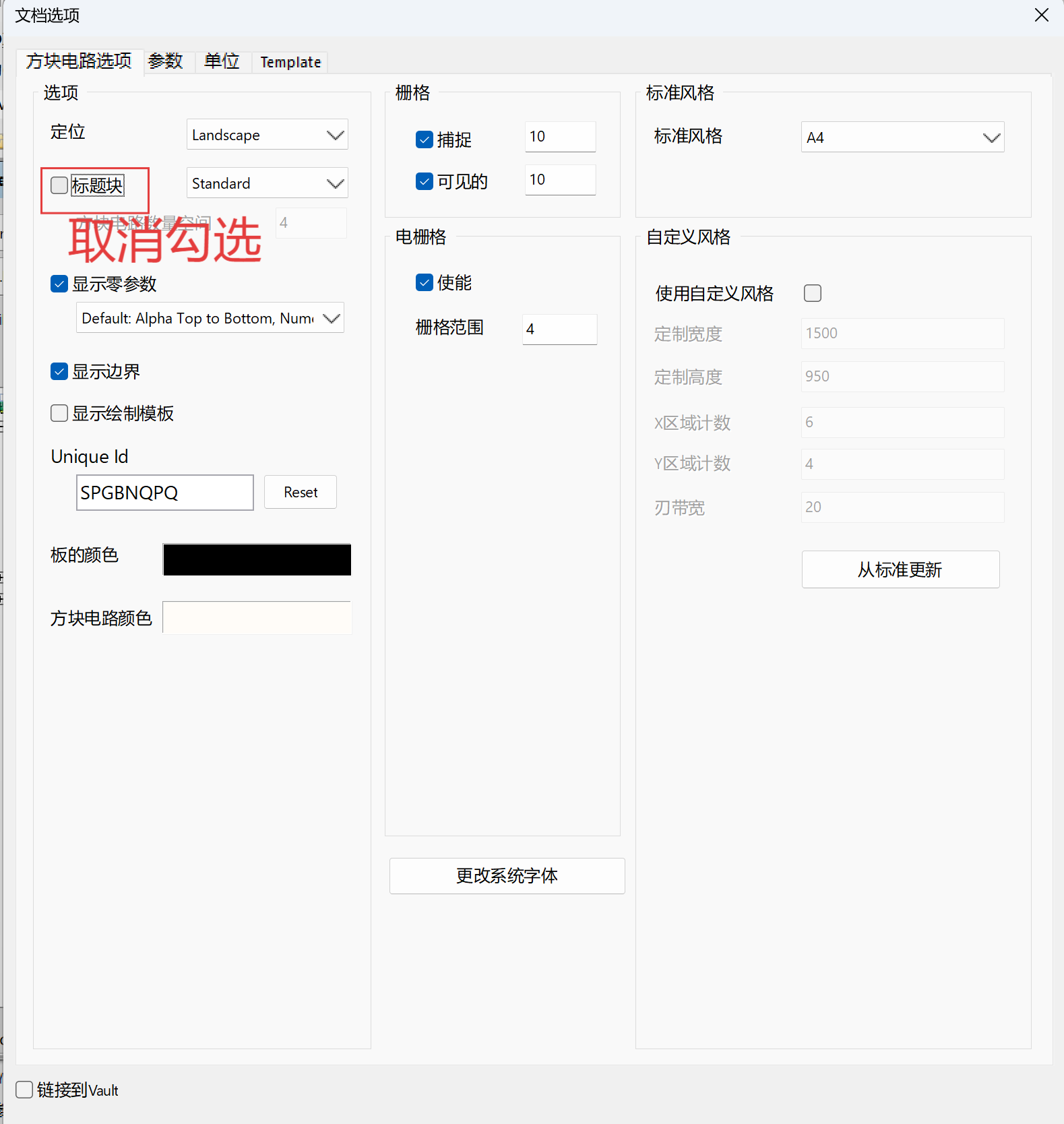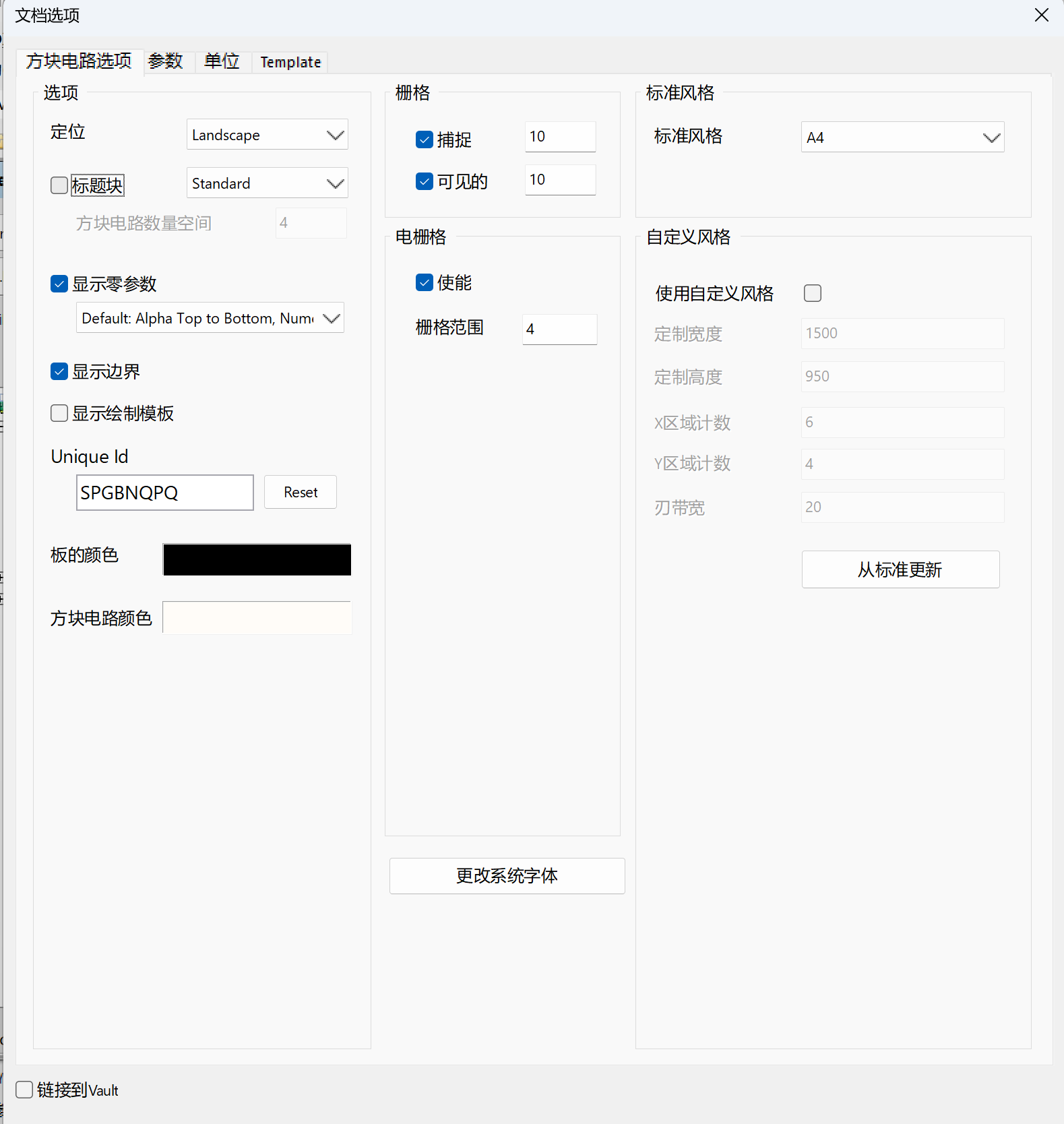 在这个界面中可以修改需要的参数,原理图大小、方块电路颜色..