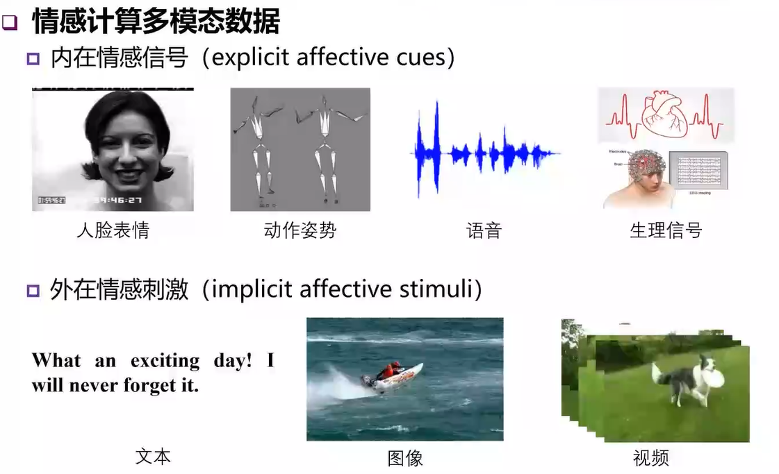 - 内在:人类的表情、动作、语音、生理信号如何表达情感?