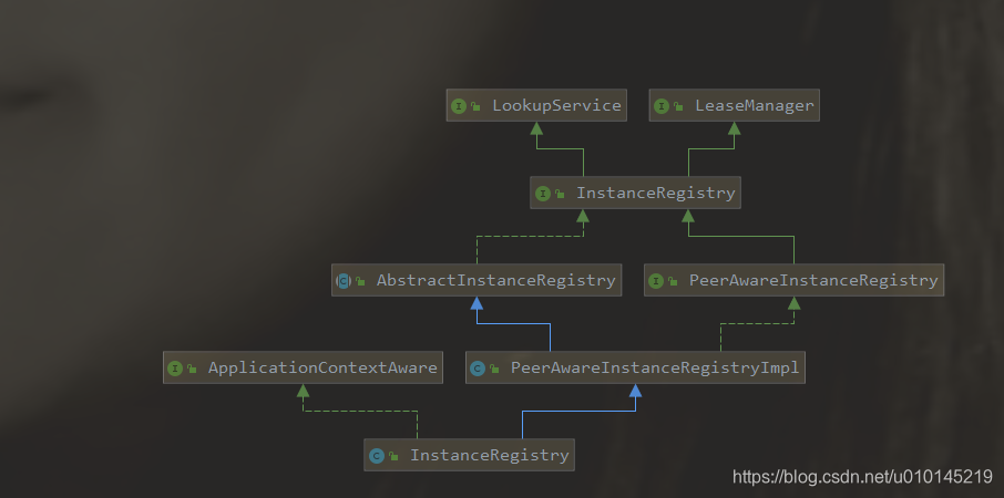 所以,查看LeaseManager的类图,看到类的继承关系,大致就明白,AbstractInstanceRegistry就是LeaseManager的基本实现类,它还同时实现了LookupService