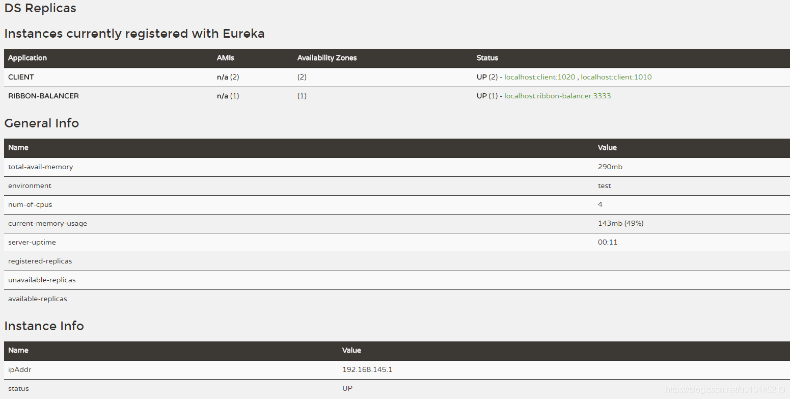 关于服务发现可以参考我之前的文章,这里重点着墨在负载均衡上。在Client中的controller添加如下方法,作为调用的真正方法实现。启动CLIENT服务时,配置两个端口,分别为1010和1020,以便查看Ribbon是否可以将请求切换到不同的服务上。