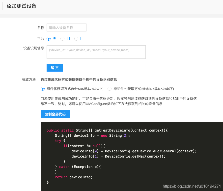 UMConfigure.init(this, null, CHANNEL_DEFAULT,UMConfigure.DEVICE_TYPE_PHONE, null);
