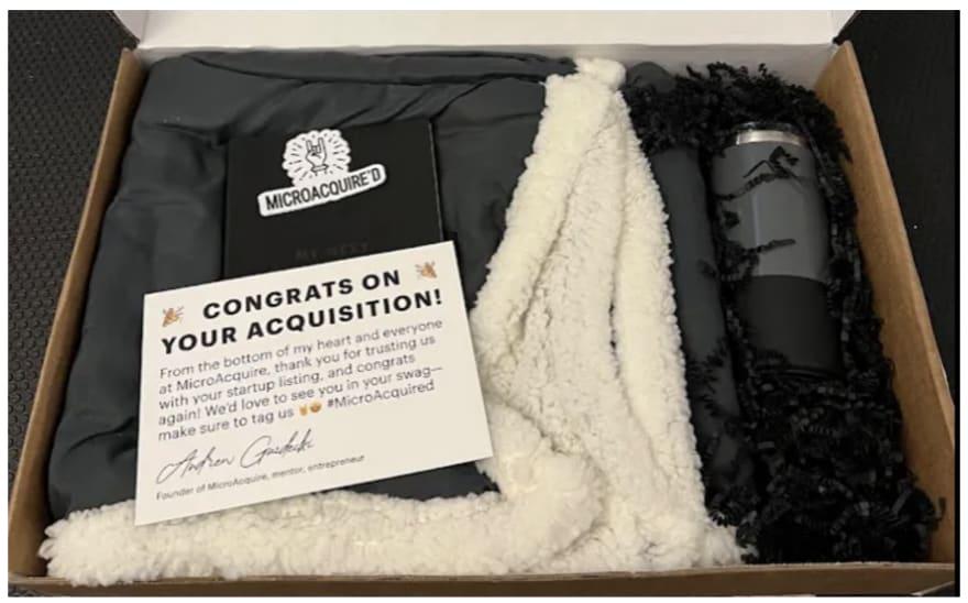 在我在他们的网站上出售我的公司后,Microacquire 寄了一份礼物来祝贺我。