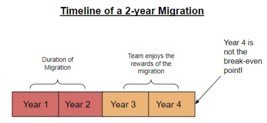 因此,2 年迁移的盈亏平衡点实际上是四年后 — 或者迁移开始后的六年。