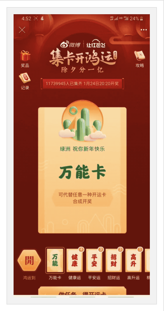 这几年头条飞速发展,春节活动更是砸了20亿来推广自家产品,从目前效果来看,App Store上的下载排行都被头条系包了,实属厉害,头条的设计团队一直比较低调,很少参加一些行业大会,但做东西还是比较优秀的,真是人狠话不多,宇宙你条哥。发财中国年的活动很有继承性,今年依旧是集卡分钱,活动比较简单好上手。