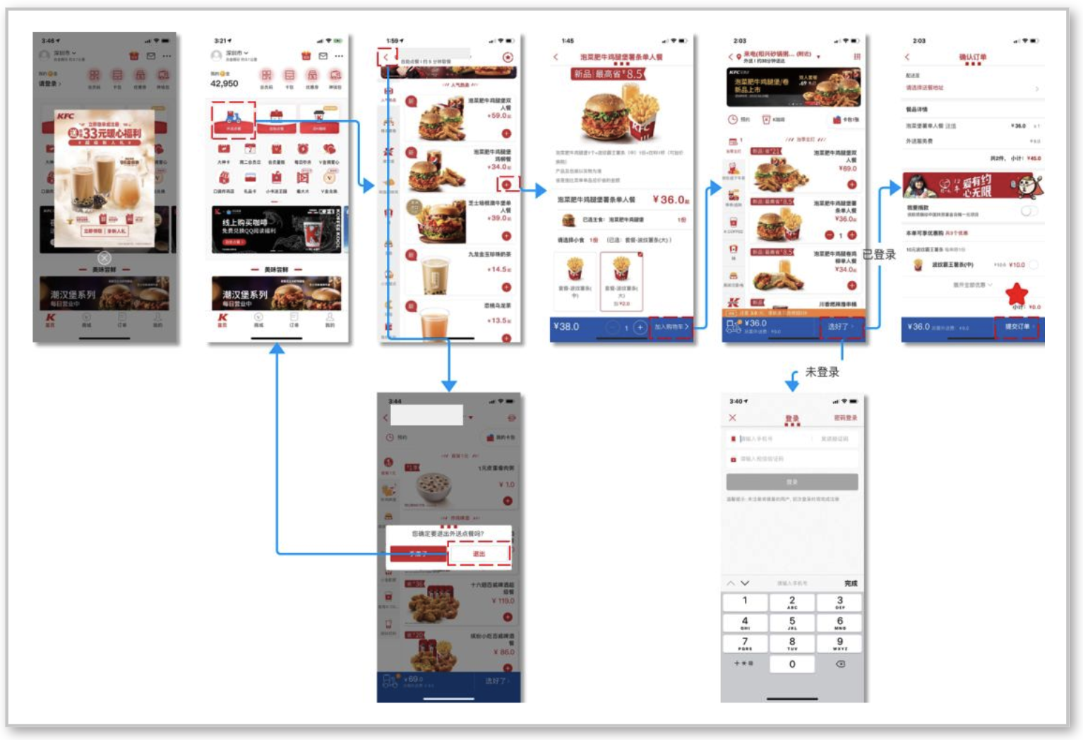选择同样是O2O生活服务平台饿了么,以及同样是独立餐饮品牌APP的肯德基作为参照,通过对比更加直观的拆解和分析。