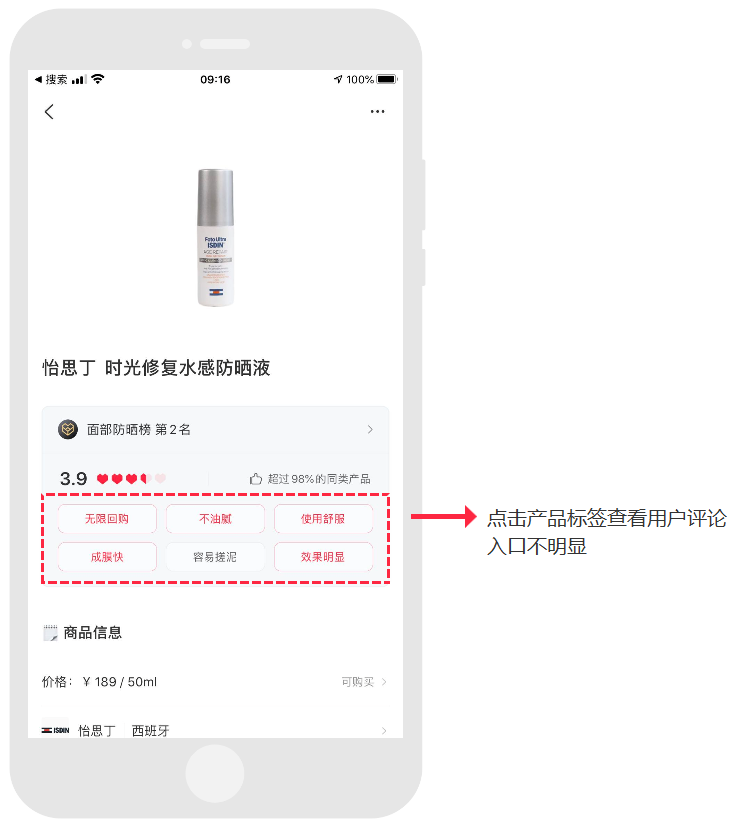 1)调研的6位用户均不知道小红心大赏榜单,笔者认为原因一是榜单入口、商品评论不易找到;二是榜单商品信息较少,且相比排名、热度和品牌,调研的用户更关心评价、肤质、年龄和价格;三是小红书社交属性弱,用户间交流不多,对小红书依然停留在初始功能;四是可参与测评的用户必须是平台选择的出品人,普通浏览用户不易触及。而产品为何如此设计可能一是不想在首页增加新业务的控件或入口,影响主页设计;二是从产品定位考虑,在榜单产品页面需突出笔记列表;三是为了保证榜单的真实性,杜绝虚假打分的可能;四是由于小红书用户中不同年龄层、不同性别人群比例本身就存在差异,对于产品年龄结构等的描述可能会不准确。但是综合看来,小红心大赏还是有一定的优化可能。