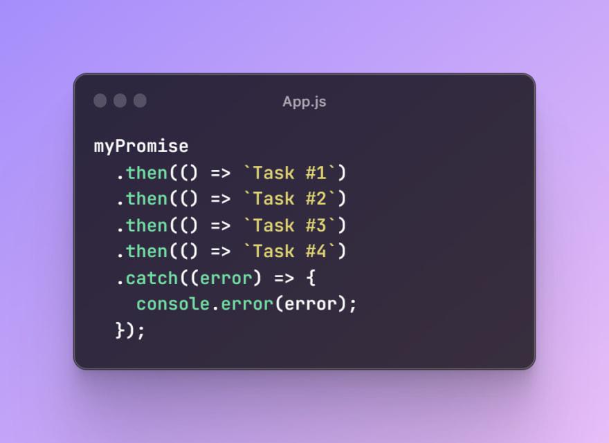 then()我们可以根据要求使用方法创建许多链。与同步代码一样,链接将产生一个串行运行的序列。让我们看一个简单的例子..