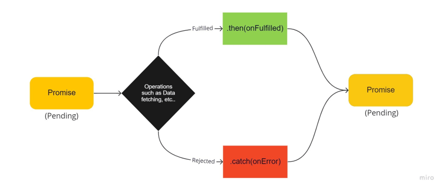 创建 Promise 后,您可以使用该then方法附加一个回调函数,该回调函数将在 Promise 完成时调用。该then方法有两个参数:解析值的回调函数和拒绝值的回调函数。