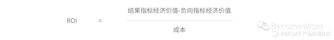 ROI的计算公式,相比传统的计算方法额外多了一个参数:“负向指标经济价值”。