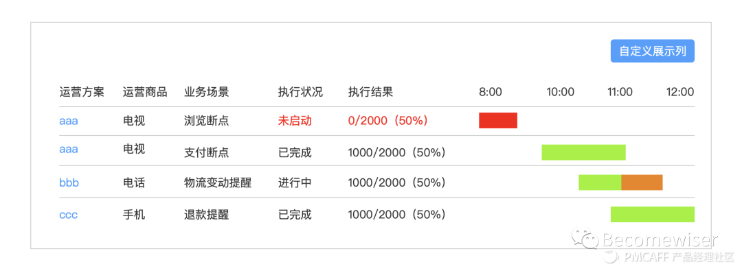 对方案的管理,常见的是列表视图,包含基础的列表及列表筛选。这一点就不描述了,而当我们要了解业务运行状况时就会使用到:执行视图、逻辑视图等。