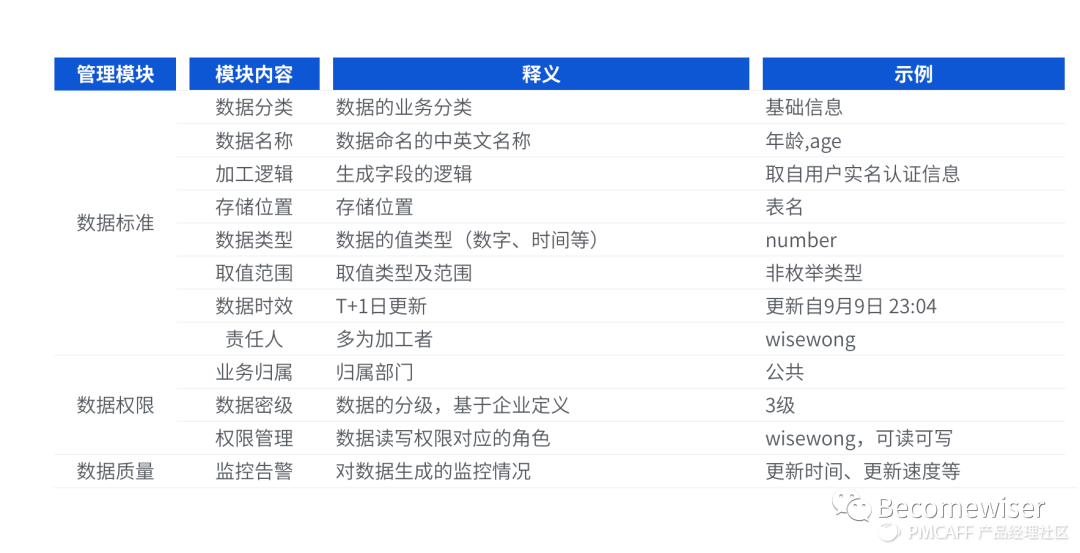 标准是指,我们怎么定义一个完整的数据,需要有名称、值类型、取值的范围、加工的逻辑等。而权限则决定这个数据归属于谁管控,密级程度又决定了不同角色的操作,包括读、写以及使用。