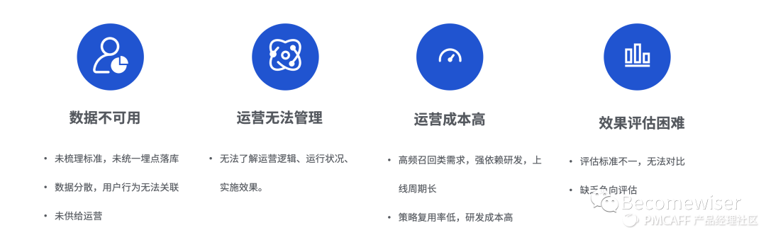这一点指的是大多数企业运营管理都强依赖人力,缺乏平台沉淀运营逻辑。当人员变动,依靠人力、代码维护的旧逻辑会很容易被忽略,而运营策略的跟踪、改进就可能不了了之了。