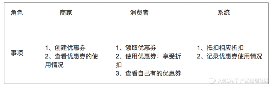 关于创建优惠券的部分信息结构。信息结构关注的是单个页面的元素,信息来源,字段限制等,而非结构化的信息,有时用表格来展示,或许会更加清晰。这个清楚的部分,就可以将其到时候放置到你的PRD中了
