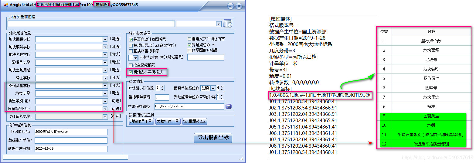 ②支持按属性地块分地块导出TXT,也可以合并为一个总的TXT;