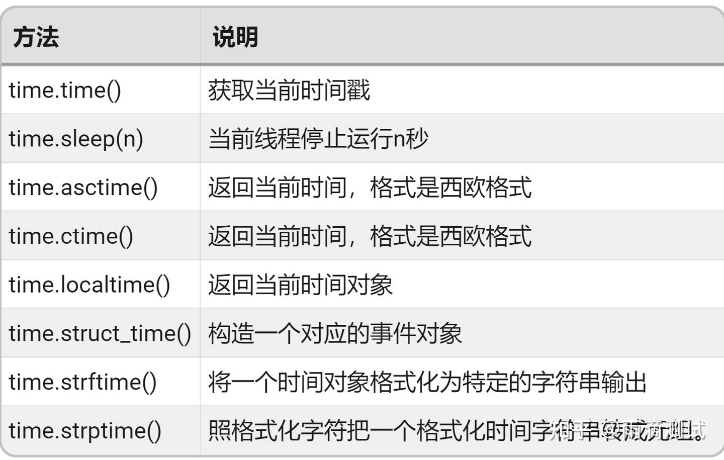 将格式化的时间转化成时间对象,元祖形式: time.struct_time(tm_year=2010, tm_mon=8, tm_mday=11, tm_hour=7, tm_min=26, tm_sec=16, tm_wday=2, tm_yday=223, tm_isdst=-1)