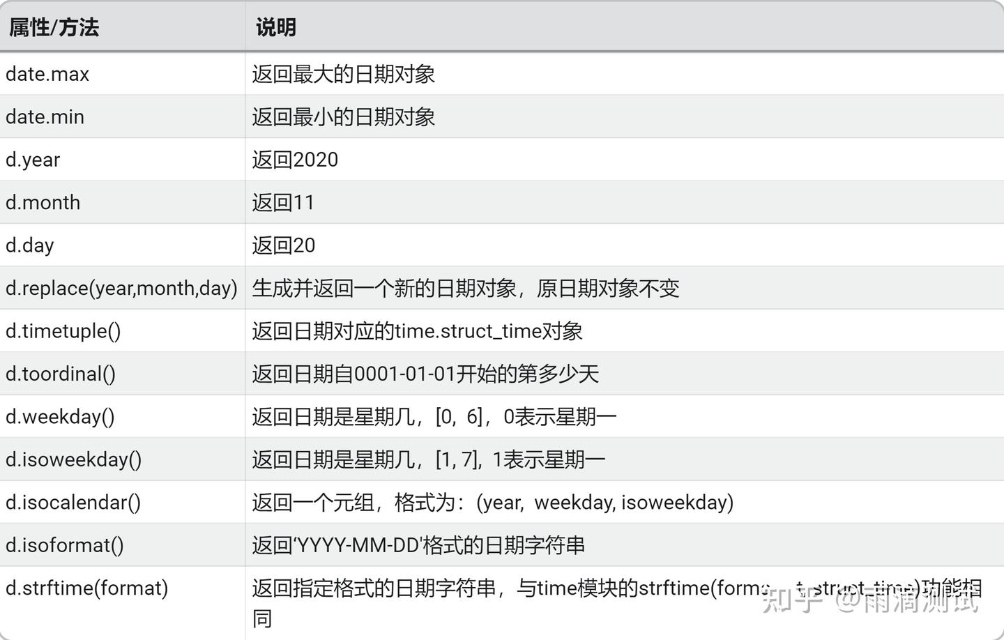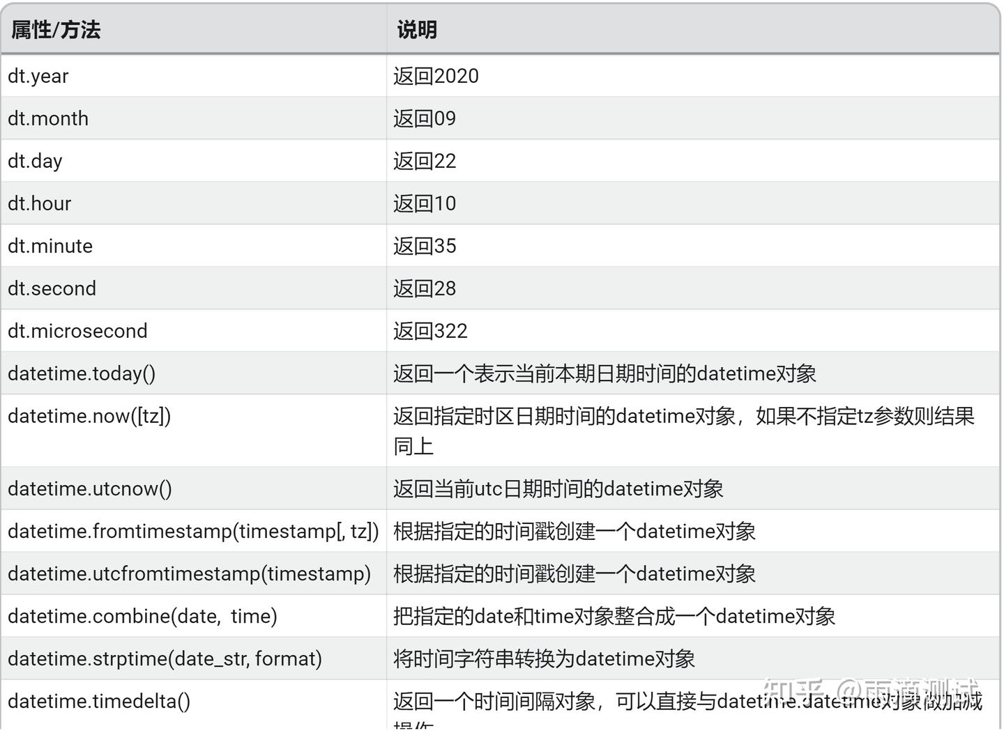 下面表格中的dt就是上面的日期时间对象