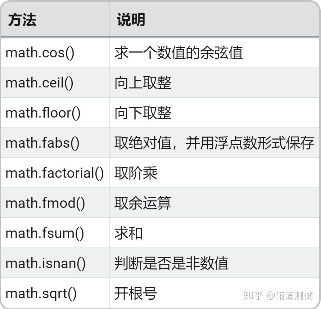 print("求和:",math.fsum([3,4,5])) # 结果 : 12