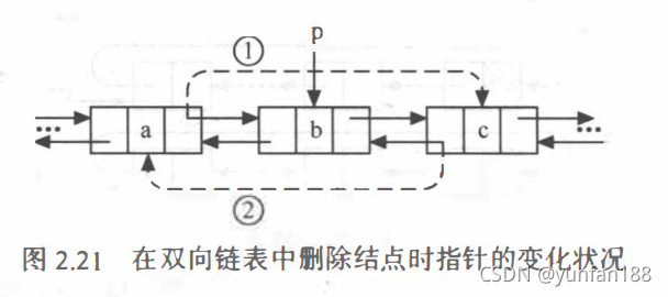 p->next->prior = p->prior; //修改被删除结点的后继结点的前驱指针,对应图2.21(2)