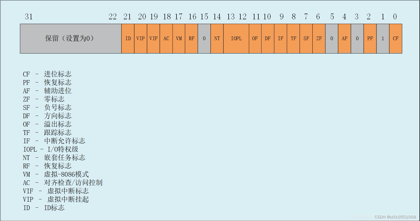 ④CF(Carry Flag)进位标志,进位时置1,否则置0.