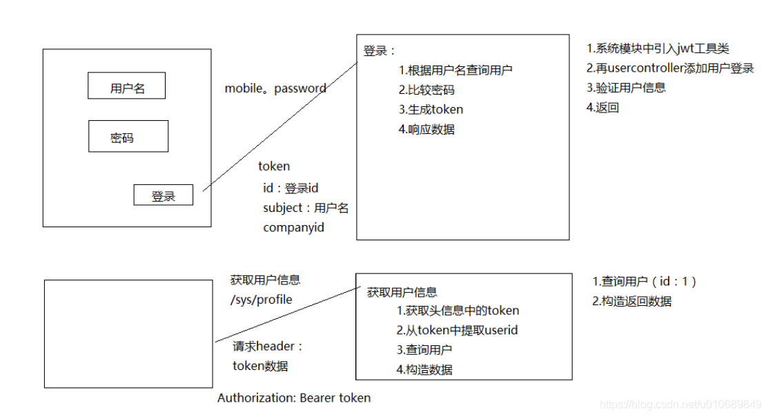 1.前端输入用户名和密码发送登入请求,后台拿到前端发送的进行验证成功后生成token,并相应返回token。