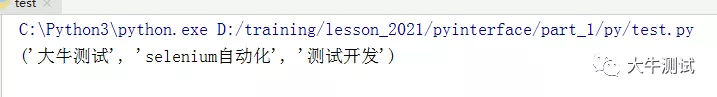 tuple = ('大牛测试','selenium自动化','测试开发') print(tuple)-