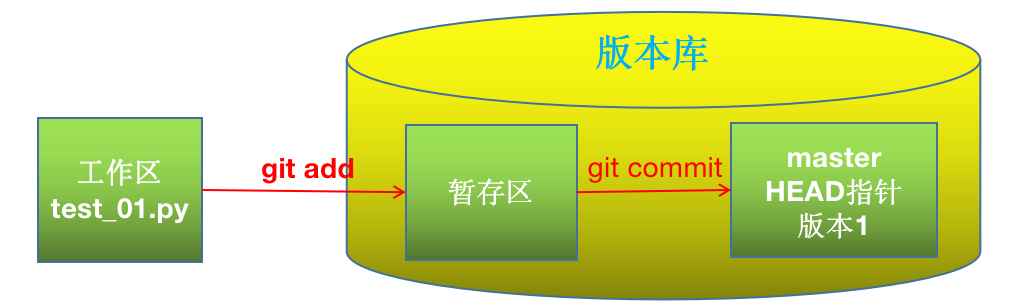 git commit -m “注释信息” : 把暂存区的内容提交到版本库,-m 表示 提交的同时添加注释信息
