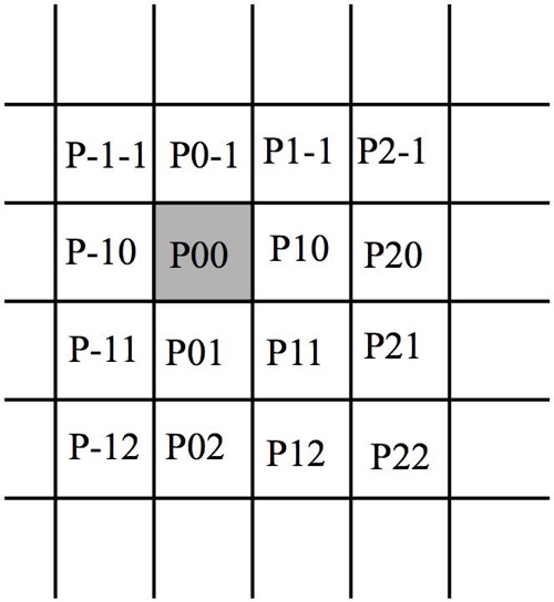 P00代表目标插值图中的某像素点(x, y)在原图中最接近的映射点譬如映射到原图中的坐标为