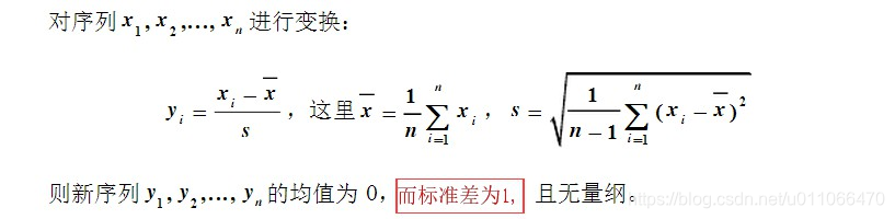- 这种方法基于原始数据的均值(mean)和标准差(standard deviation)进行数据的标准化。将A的原始值x使用z-score标准化到x’。