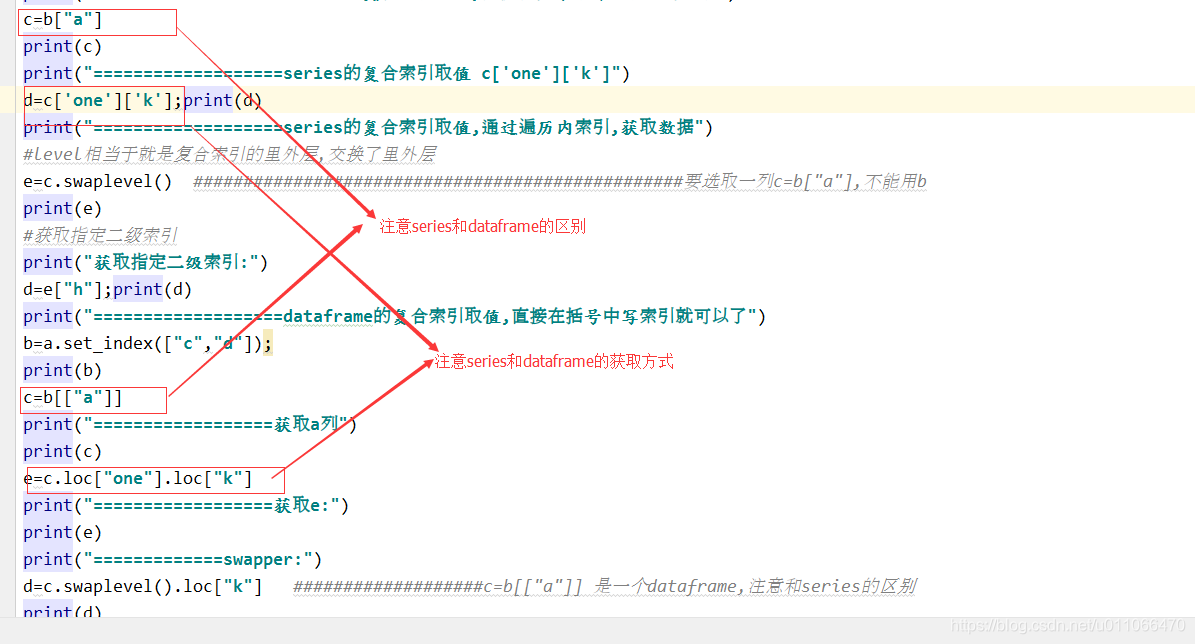 d=c.swaplevel().loc["k"] ###################c=b[["a"]] 是一个dataframe,注意和series的区别