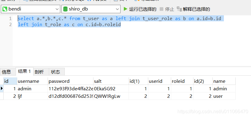 新建两个用户:一个admin用户的角色为admin,ljf用户的角色为user。