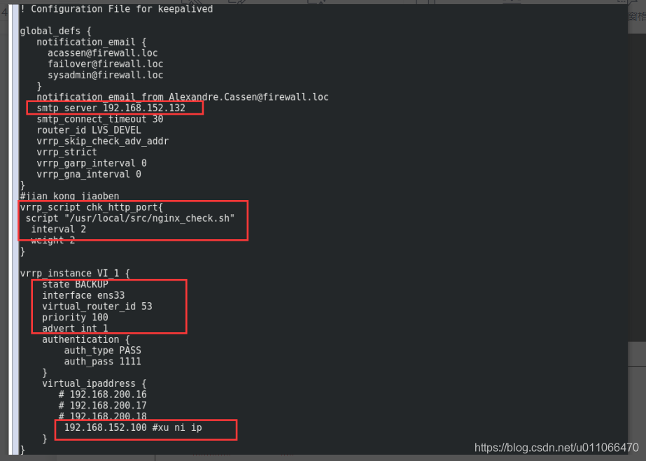 默认安装的路径为:/etc/keepalived/keepalived.conf